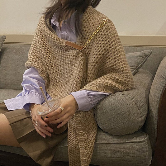 Juliet Moreau™ Trójkątny szal z dzianiny ze skórzanym zapięciem