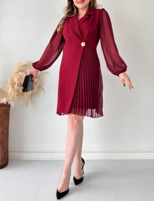 Alida Talerico™ Stylowa i elegancka plisowana sukienka z okrągłym dekoltem