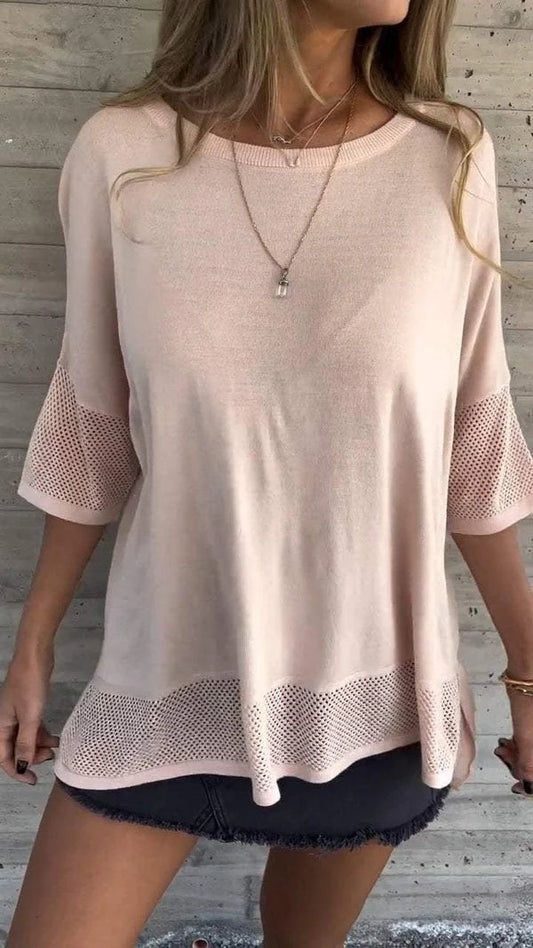 Gaia™ Damski casualowy żakardowy top z okrągłym dekoltem