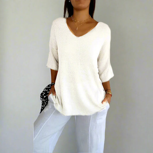Ninfa™ Casualowa koszulka z rękawami 3/4 i dekoltem w szpic