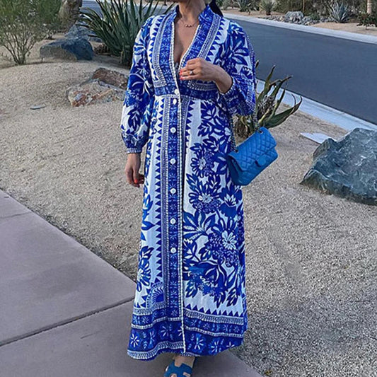 Flora Recine™ Damska sukienka boho z dekoltem V