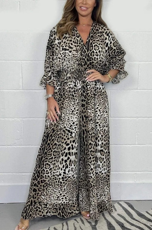 Belina Spinosa™ Luźny, swobodny kombinezon z nadrukiem w panterkę
