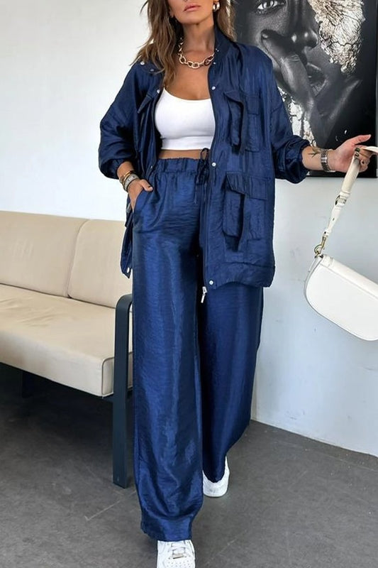 Rachele Stella™ Modny komplet z koszulą i luźnymi prostymi spodniami