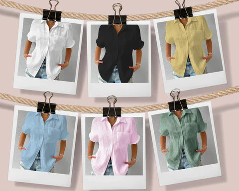 Zenobia Torti™ Bluzka z kołnierzykiem koszulowym, luźna, zapinana na guziki