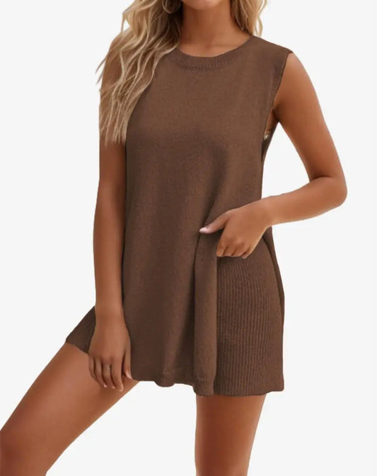 Savina Rosania™ Letni komplet 2-częściowy – długa tunika bez rękawów i szorty