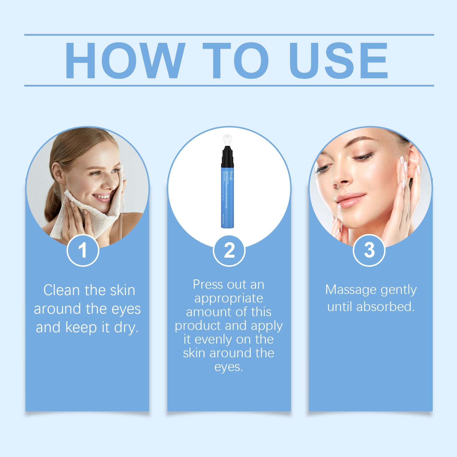 Krok 2. Delikatnie wklep wokół konturu oka, w tym okolice pod oczami i łuk brwiowy, za pomocą aplikatora.