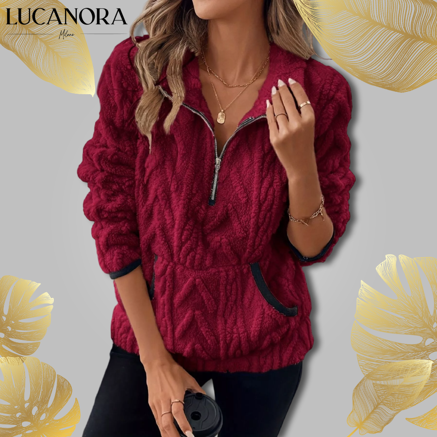✔ Stylowy zamek błyskawiczny do połowy – Spersonalizuj swój wygląd w kilka sekund. Zapnij zamek błyskawiczny, aby zapewnić sobie ciepło, lub rozepnij go, aby uzyskać swobodny styl i dodać nowoczesny akcent do swojej stylizacji.