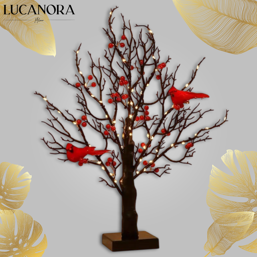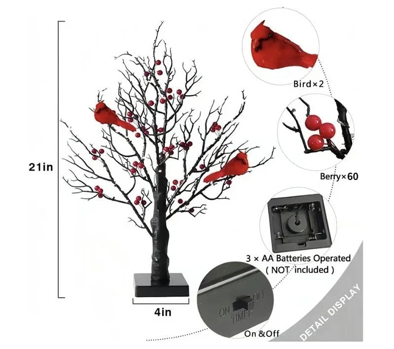 CardinalGlow™ dekoracyjne drzewko z kardynałami i światłami