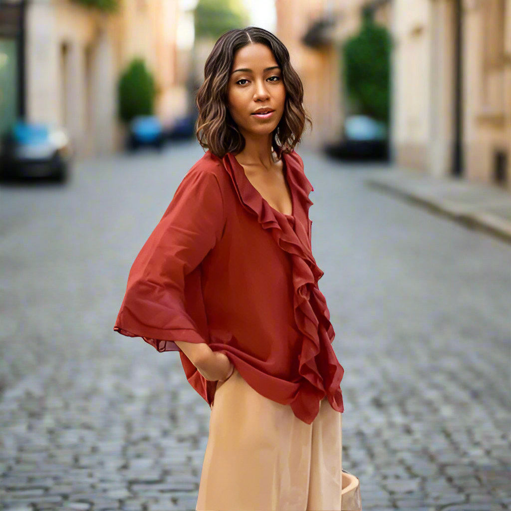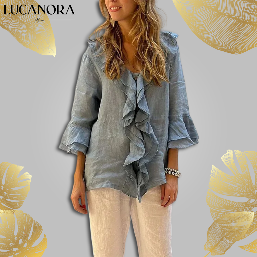 Carmela Cagnina™ Stylowa bluzka z falbaniastym kołnierzykiem