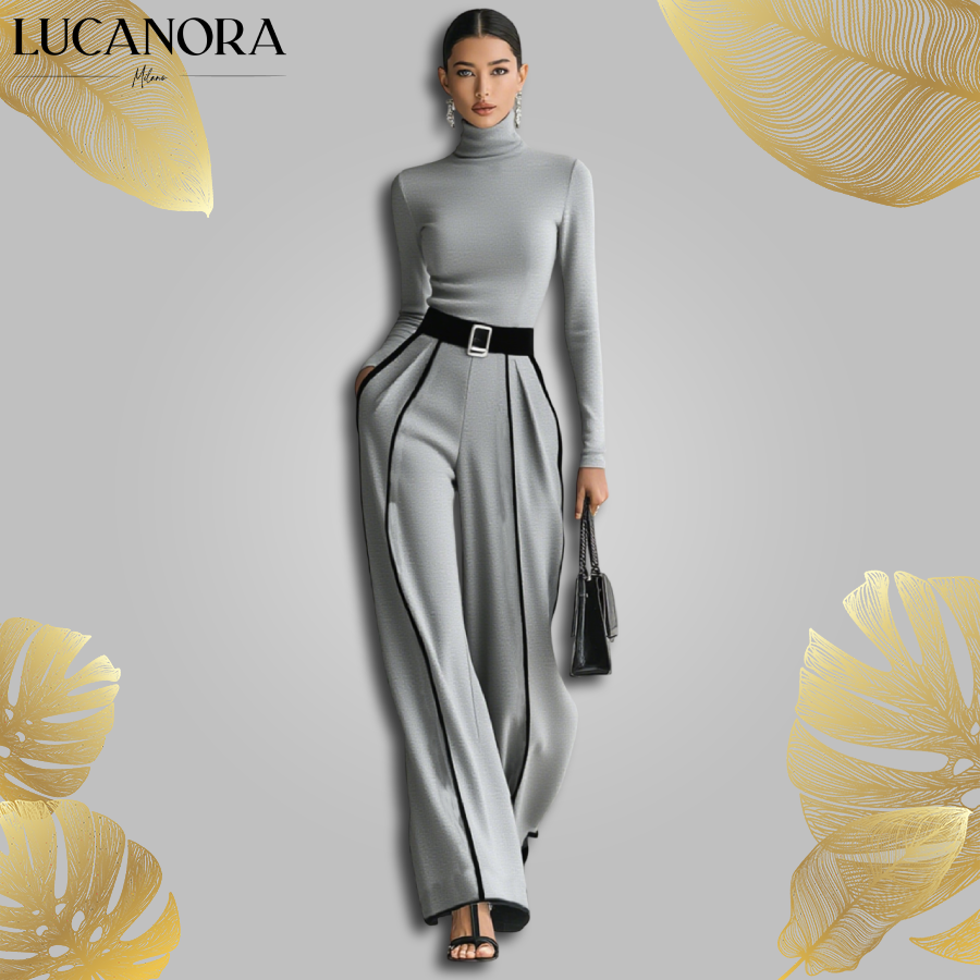 Erminia Patane™ Elegancki komplet spodni z szerokimi nogawkami i golfu