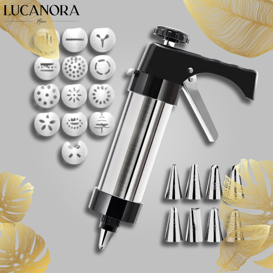 Poznaj swojego nowego najlepszego pomocnika w kuchni: FloraBake™. Z tym zestawem poczujesz się jak profesjonalistka – bez stresu i bez wysiłku. Wyobraź sobie, że jednym ruchem tworzysz idealne róże, gwiazdki i kwiaty, zamieniając zwykłe ciasteczka w małe jadalne dzieła sztuki.