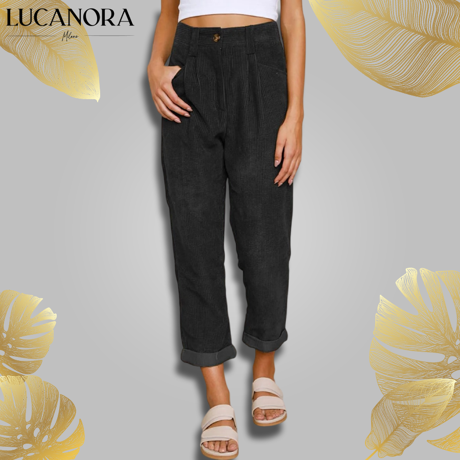 Floriana Cuomo™ Damskie sztruksowe spodnie z kieszeniami i zamkiem
