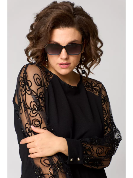 • Krój: Dopasowany krój z prześwitującymi długimi rękawami