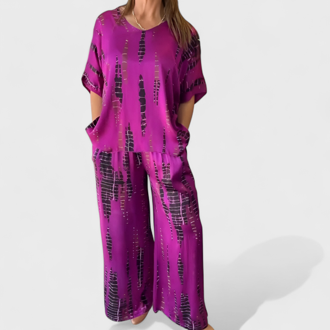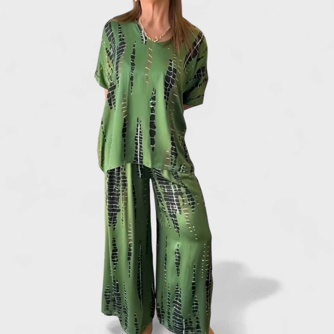 Dwuczęściowy komplet ułatwiający stylizację – idealnie dobrana góra i spodnie sprawiają, że wyglądasz świetnie bez zastanawiania się, „czy to do siebie pasuje”. Po prostu zakładasz i wychodzisz – efekt jest od razu elegancki i dopracowany.