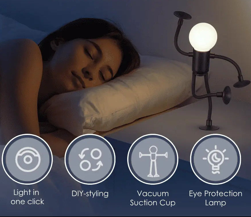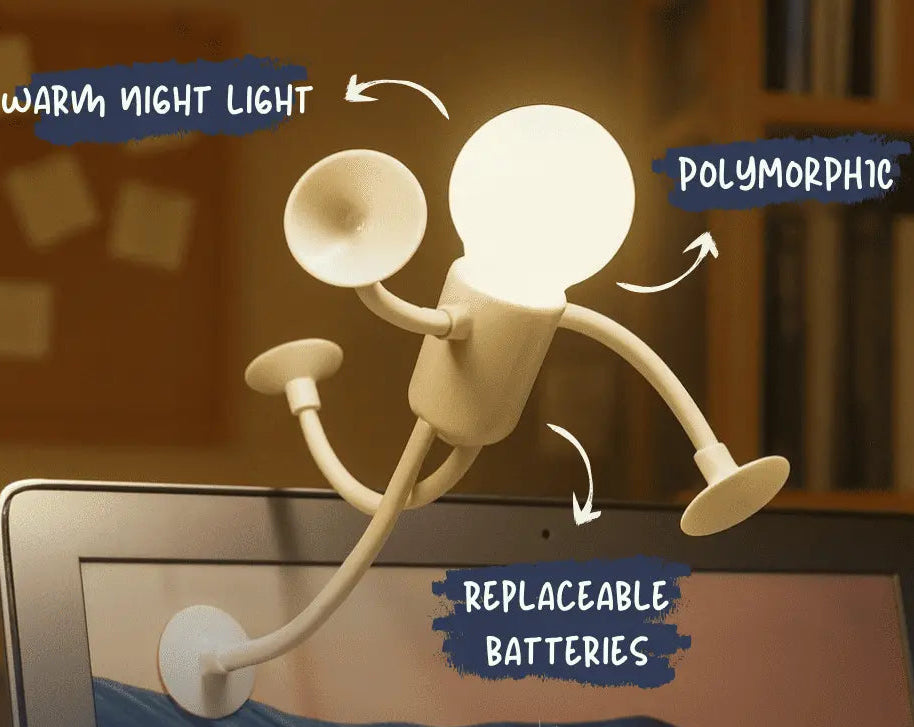 To urocza lampka w kształcie ludzika, która bardziej przypomina przytulnego towarzysza niż zwykłą, bezosobową lampę. Emisja miękkiego, kojącego światła zamienia ostre oświetlenie w ciepłą, nocną atmosferę, idealną do wyciszenia przed snem lub subtelnego oświetlenia biurka, półki czy stolika nocnego.
