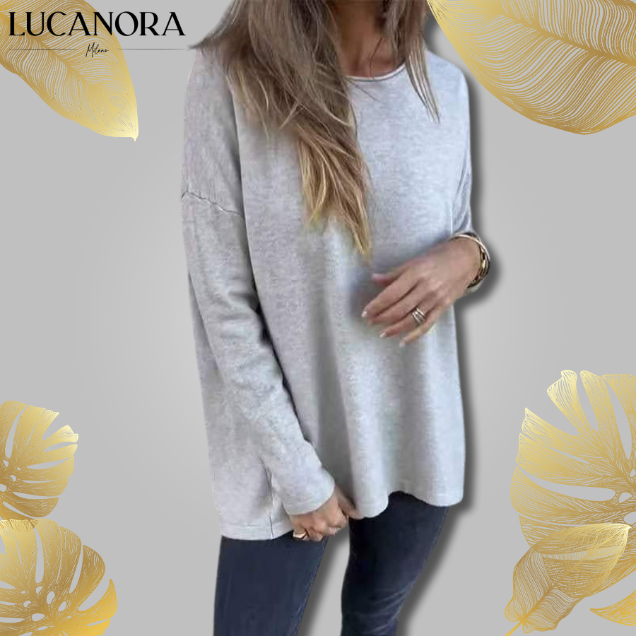 Miriam Fina™ damska luźna bluzka z długim rękawem w jednolitym kolorze