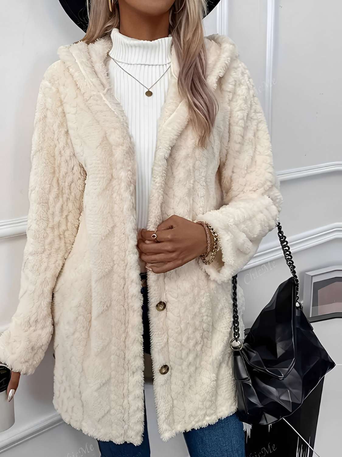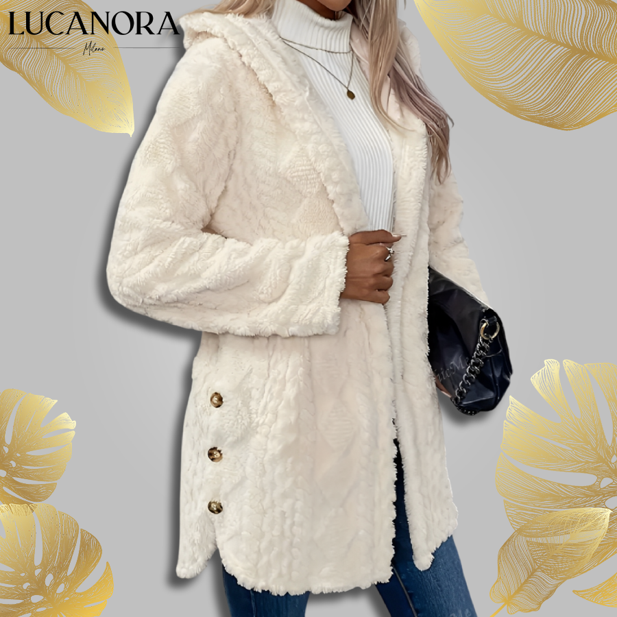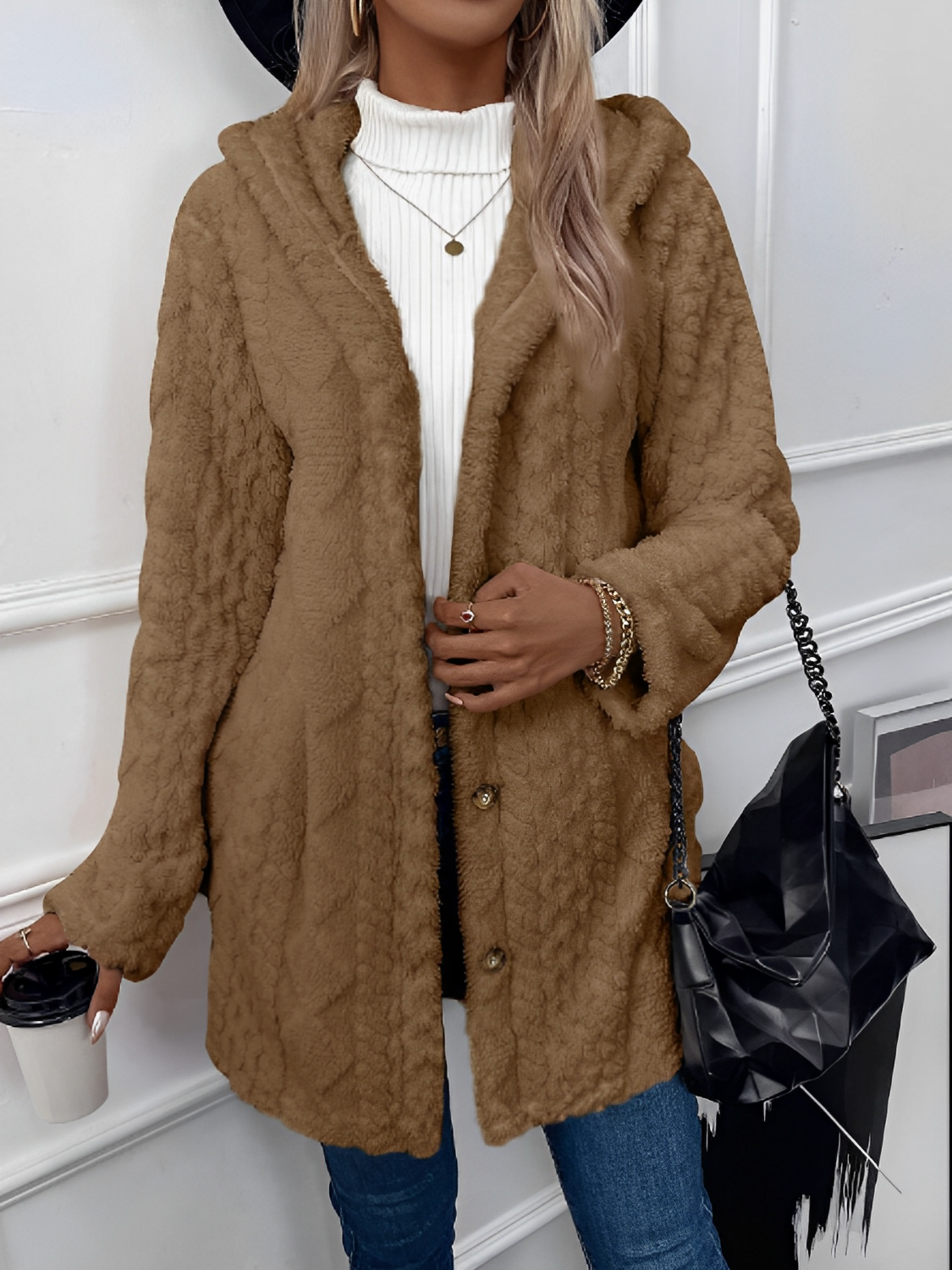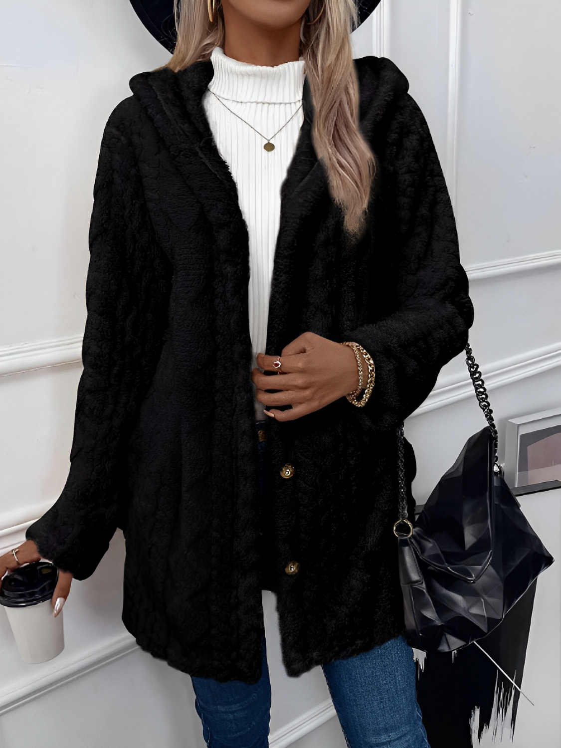 Ta kurtka z kapturem to Twój nowy towarzysz na chłodne poranki, stylowe wieczory i wszystko pomiędzy. Ma luksusowy, długi krój, który idealnie leży, kaptur, który z pewnością założysz, gdy zawieje wiatr, oraz miękkie futro, które szepcze „Królowa przytulności”, nie krzycząc.