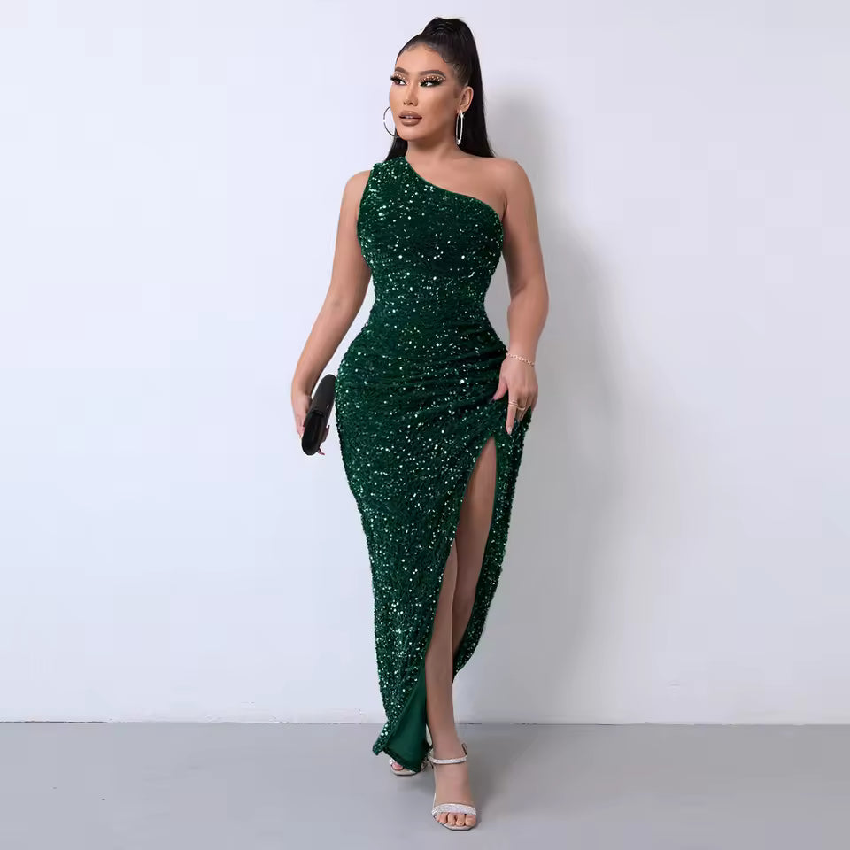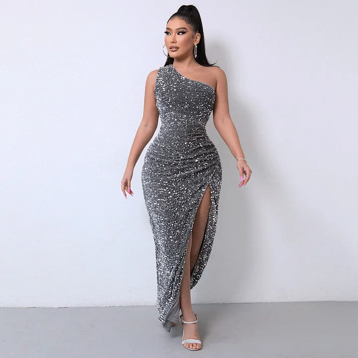 Twój natychmiastowy bilet do niepowstrzymanej, oszałamiającej pewności siebie. Stworzona dla kobiet, które nie się poddają, ta sukienka mieni się luksusowymi cekinami, które odbijają światło przy każdym ruchu. To nie tylko sukienka – to doświadczenie, które sprawi, że poczujesz się seksownie, potężnie i niezapomniana.
