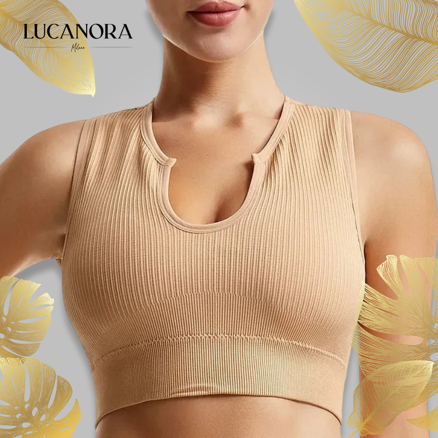 ✔ Modeluje bez stanika: Ten crop top ma wbudowane podtrzymanie, więc możesz całkowicie zrezygnować ze stanika. Delikatnie unosi biust i kształtuje sylwetkę – bez fiszbin, bez ucisku, bez niewygody.