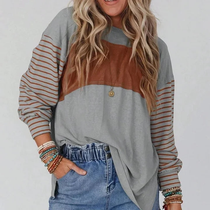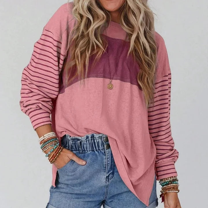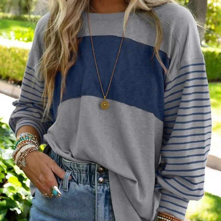 Ponadczasowy wzór w paski: stylowy i elegancki — sprawdzi się zarówno na co dzień, jak i w bardziej dopracowanych stylizacjach.