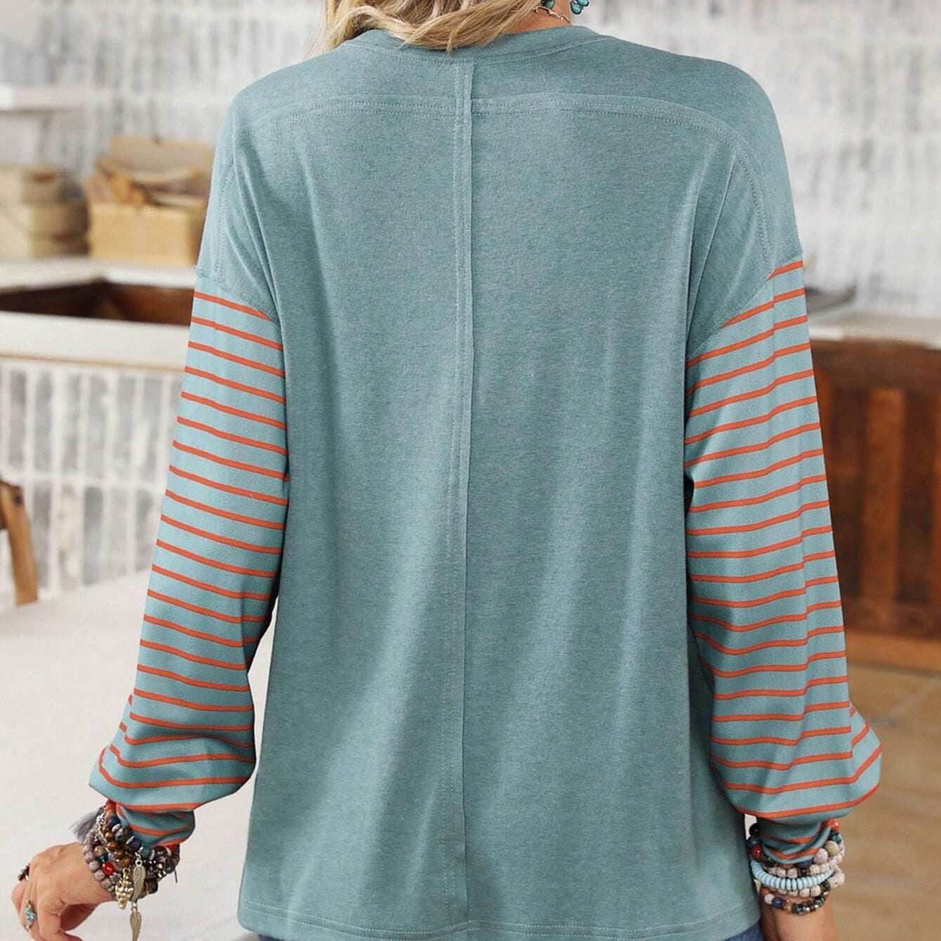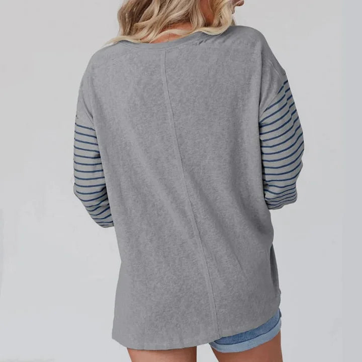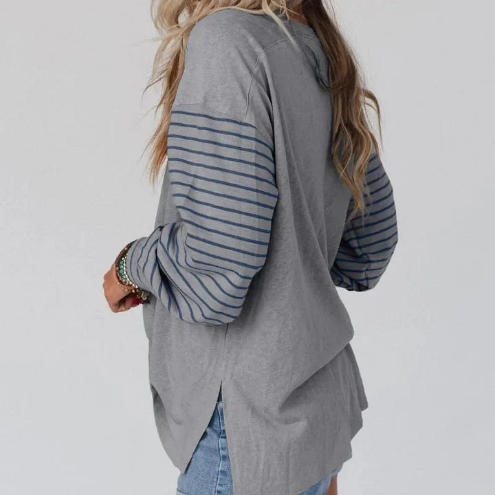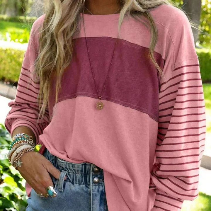 Ten top otula Cię miękką, oddychającą tkaniną, która jest lekka, a jednocześnie wytrzymała. Atrakcyjny wzór w paski optycznie wydłuża sylwetkę, a zaokrąglony dekolt dodaje eleganckiego, kobiecego akcentu. Dzięki uniwersalnemu krojowi możesz nosić ją wpuszczoną w dżinsy na brunch, do legginsów na zakupy lub pod marynarkę, aby stworzyć elegancki look do biura.