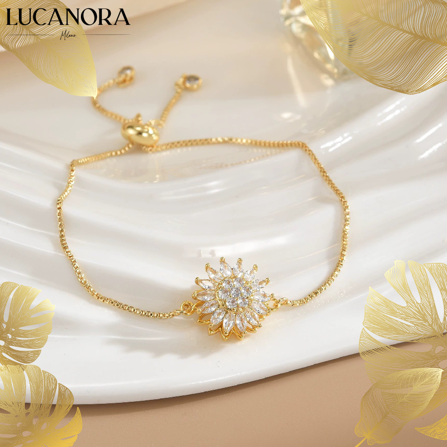 Ta subtelna biżuteria ze słoneczną zawieszką odbija światło niczym promień słońca. Obrotowy wisiorek porusza się z każdym Twoim ruchem, pełniąc rolę małego talizmanu – możesz lekko obracać go palcami, gdy chcesz się wyciszyć lub skupić.